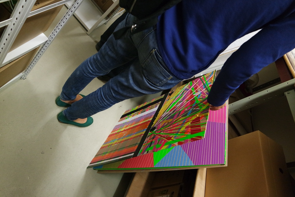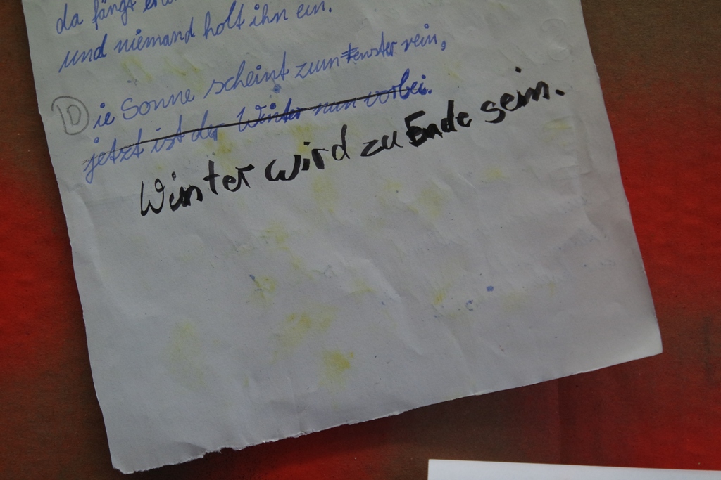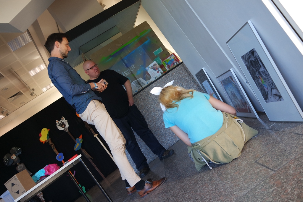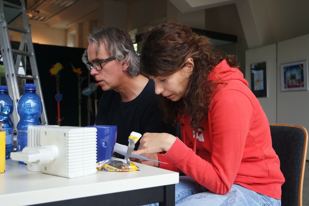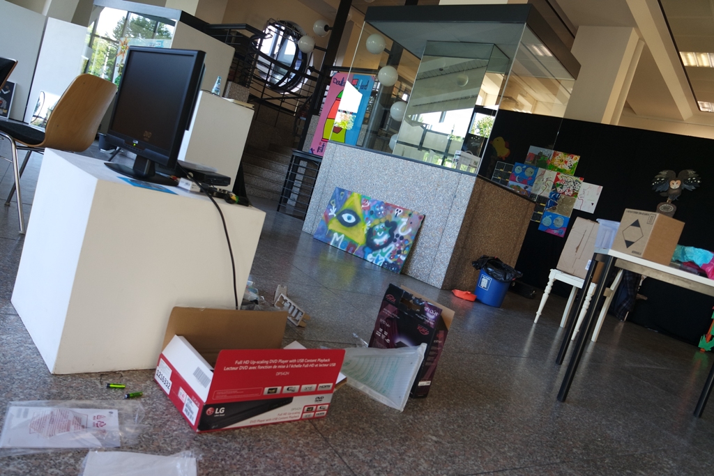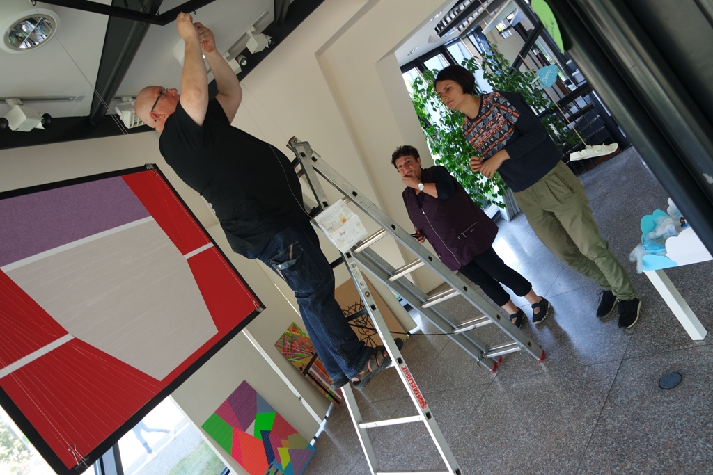 Während des Aufbaus konnten zum ersten Mal die künslerischen Arbeiten der Kinder und Jugendlichen in Gänze betrachtet werden. Detailansichten waren nun möglich. Die Mitglieder der Jury kannten die Arbeiten bisher nur auf der Grundlage von Fotografien. Teilweise waren die Arbeiten, die Anfang des Jahres eingereicht worden waren, auch noch unvollständig.